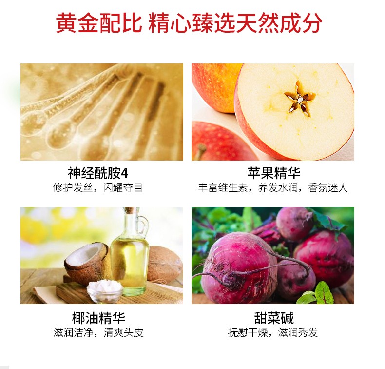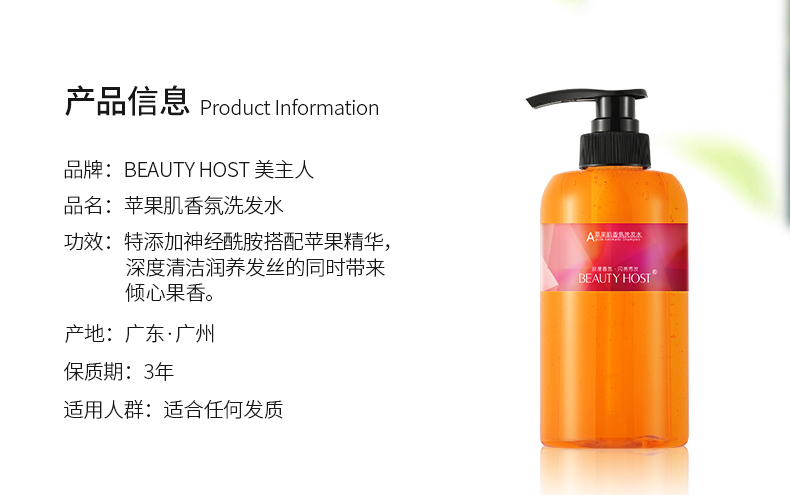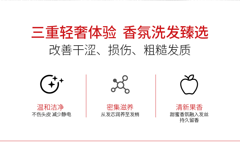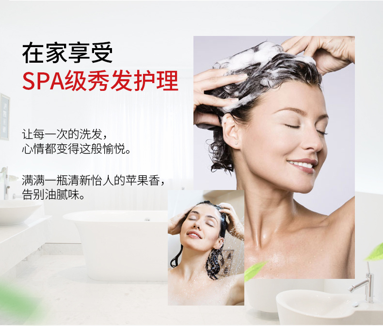 萃取清新苹果精华,温润洁净,滋养强韧秀发,修护发丝,令秀发弹韧柔顺有光泽,配合神经酰胺成分,温和修护头皮发丝,改善头皮油污,带来轻盈蓬松的飘逸秀发