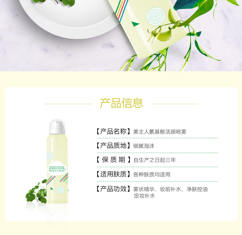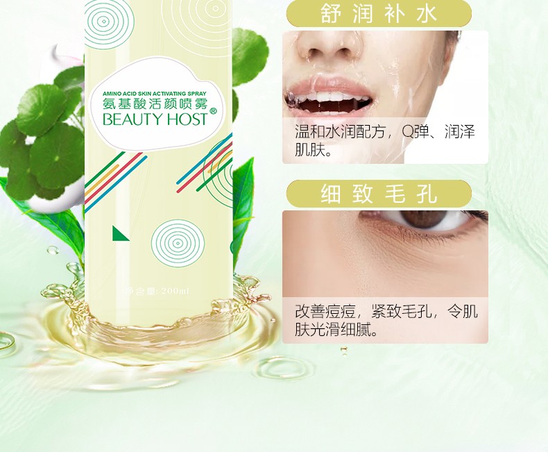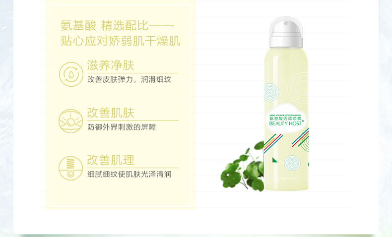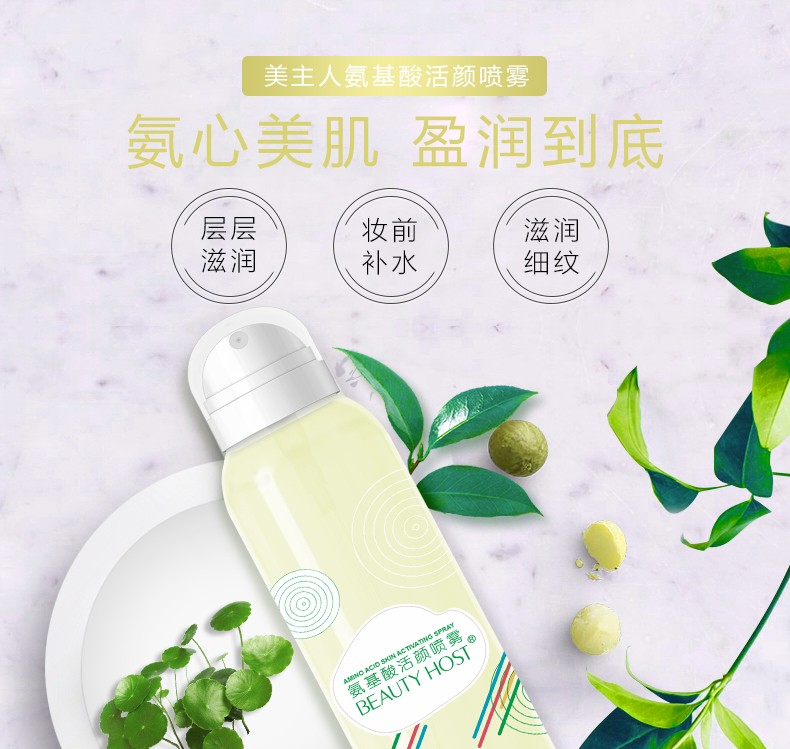 蕴含氨基酸精华盒保湿成分,给缺水肌肤补充水分,滋养净肌、润滑细纹、在肌肤上轻轻一喷,滴滴洁净、丝丝润养、令肌肤润泽、清爽、焕发迷人美肌。