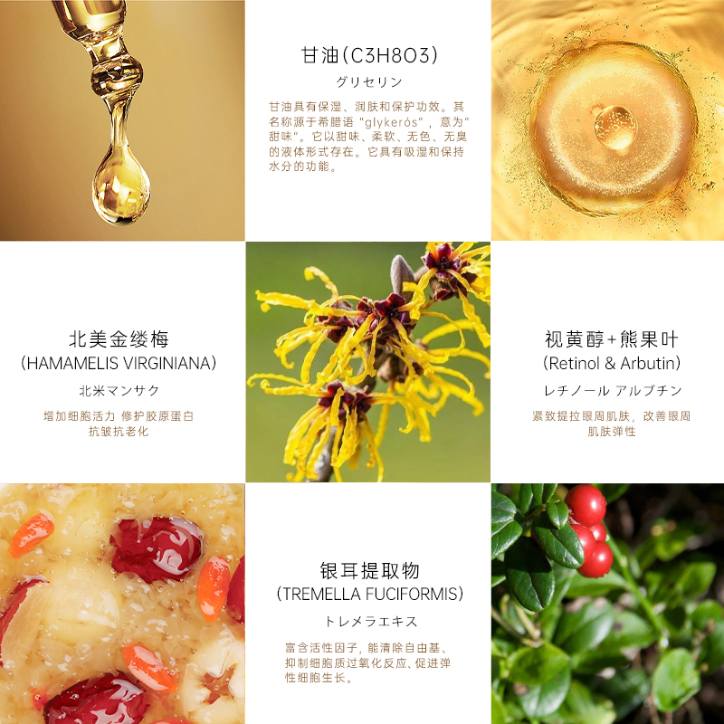 ★ 年轻睛采 魅力精彩 ★ ● 硬核呵护娇嫩眼周,改善眼周肌肤松弛 弹润紧实,改善眼周肌肤状态,给予肌肤补充营养; 植萃养护,“拉紧”眼周松弛皮肤,提升眼周肌肤弹性。
